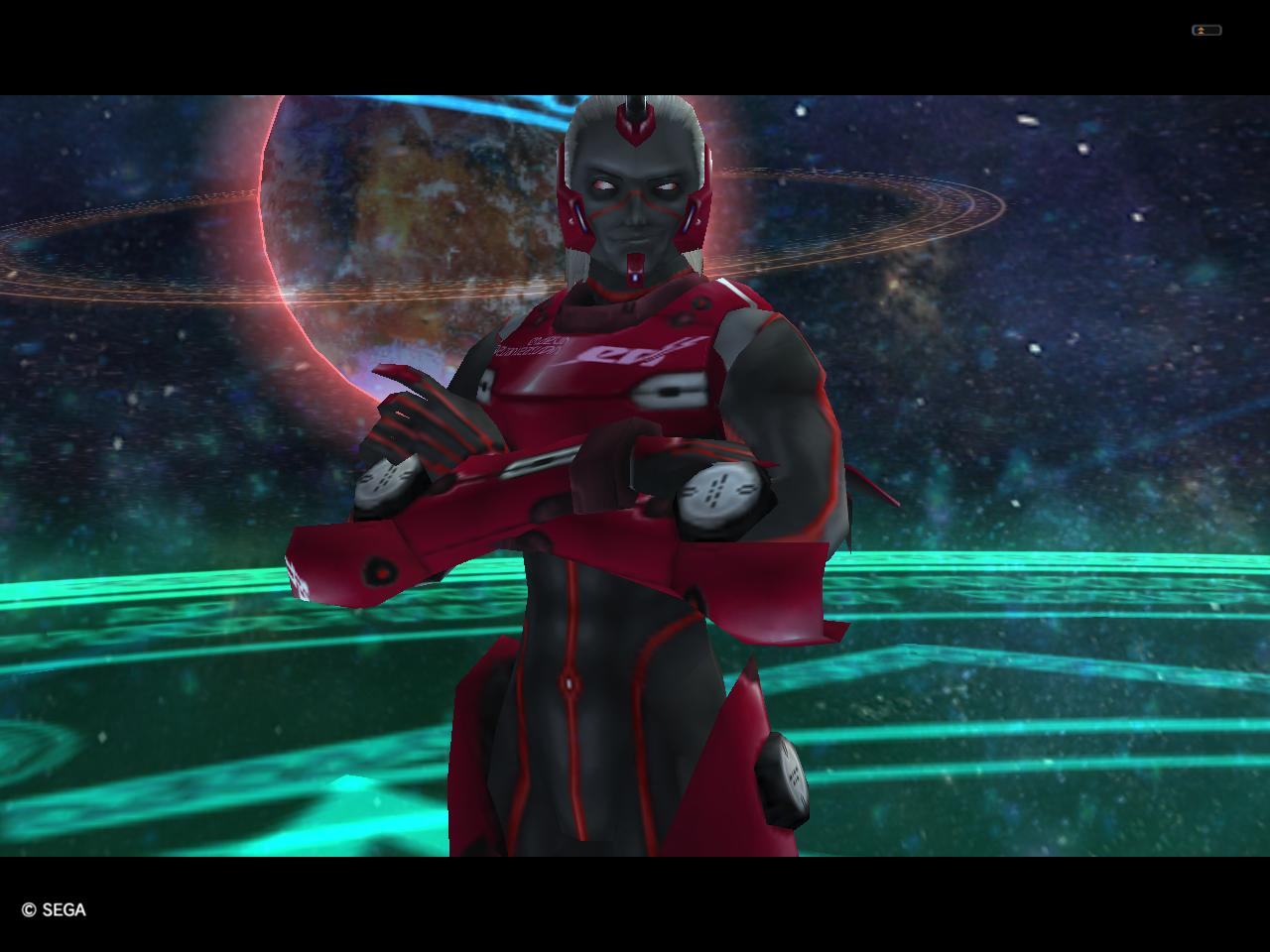 両手にセイバーを持っていて、その2つのセイバーはまるで真紅のように赤く染まっていた。